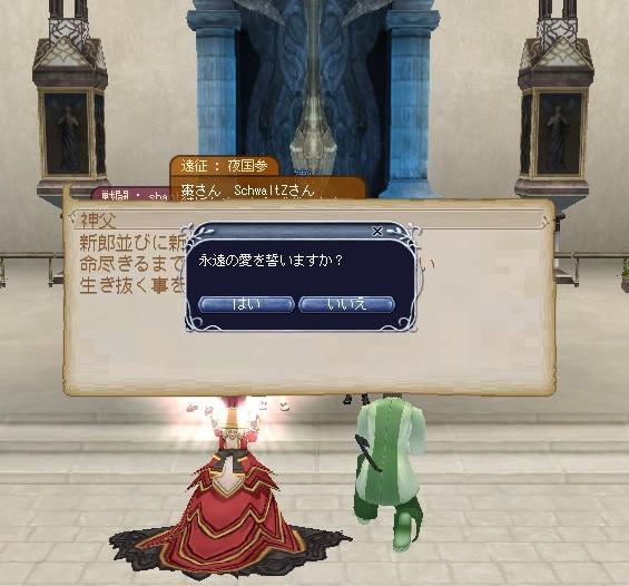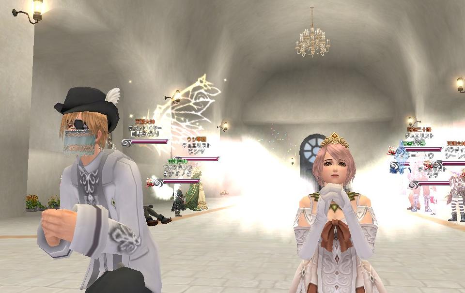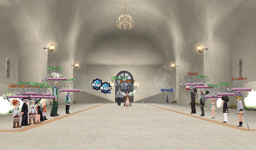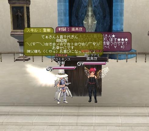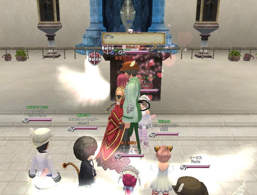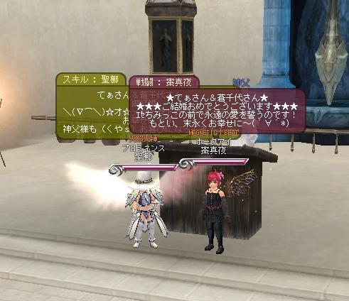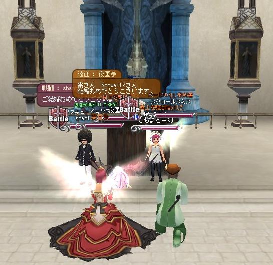 メンテなげぇよ、おぃ!!!! そんなワケでこんにちは。 今回は11段の産物と、ギルメンの美亜ちゃんとTEAM三十路のkody-aさんの結婚式を中心にSS貼ります(´∀`*) まずは結婚式から↓